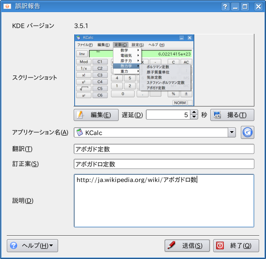 報告先は http://www.kde.gr.jp/~tasuku/i18n/report/ に一応作成。